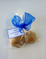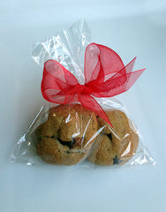 Send your guests home with a decadent homestyle treat. Cookies (1 variety of your choosing) are packed two per bag... because one just isn't enough! Cookies are packaged in clear bags with a single organdy or satin ribbon and favor tags. Please note your ribbon color preference in the comments section at checkout.