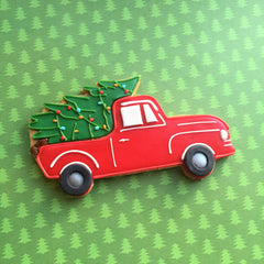 Beep! Beep! Beep! Christmas tree coming through! This bright red pick-up truck is on the move and ready to help you deck the halls.