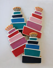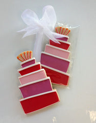 Vibrant, eye-catching colorblocking gives these birthday cake cookies a fun and modern feel. Cakes come in varying shades of the color of your choosing.