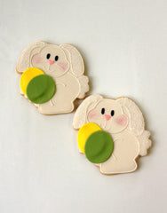 Carrying two Easter eggs, these fresh-baked Easter Bunny cookies are a delightful addition to any Easter basket and a refreshing alternative to their traditional chocolate cousin.