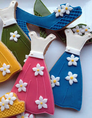 Iced cookie favors come individually wrapped in clear bags with a single organdy or satin ribbon and favor tags. Ribbon style and color is chosen to best complement the cookie. Learn more here »