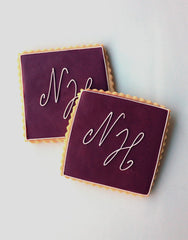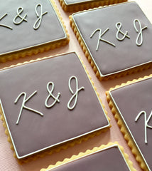 Add a personal touch to your event with these monogrammed cookie squares. Choose from a variety of base and accent colors.