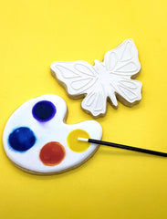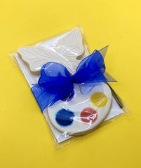 Activity and sweet treat all in one - this paint your own butterfly cookie is a fun birthday party craft and favor. Package includes one butterfly cookie to paint, one edible paint palette cookie and one brush. Simply wet brush with a small amount of water, hydrate color and paint color onto cookie. Works like watercolor! For specific paint colors or custom cookie designs, please send us an email.