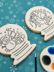 Activity and sweet treat all in one - this paint your own snow globe cookie is a fun holiday craft and favor. Package includes one snow globe cookie to paint, one edible paint palette cookie and one brush. Simply wet brush with a small amount of water, hydrate color and paint color onto cookie. Works like watercolor!