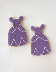 Trimmed with sparkling sugar crystals and iced in the color of your choosing, this oh so pretty princess dress cookie is the perfect treat for a princess themed birthday party.