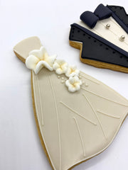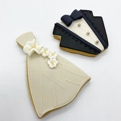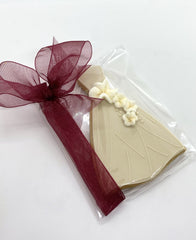 Iced cookie favors come individually wrapped in clear bags with a single organdy or satin ribbon and favor tags. Ribbon style and color is chosen to best complement the cookie. Learn more here »
