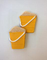 Iced cookie favors come individually wrapped in clear bags with a single organdy or satin ribbon and favor tags. Ribbon style and color is chosen to best complement the cookie. Learn more here »