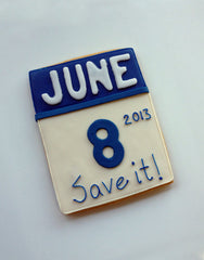 If you're looking for a unique way to tell your guests about an upcoming event, then these save the date cookies are for you. These cute calendar snapshots can be customized with your event date and the accent color of your choosing. Packaging includes a custom favor tag on which additional party information can be printed. These cookies make truly memorable engagement party favors. Please include month, date, and year info in a follow up email: casue@casuesweets.com. To have the cookies mailed individually, please contact us.