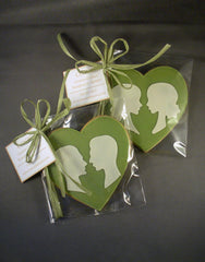 Created to celebrate marriage equality in NYC, these sweet silhouettes make lovely wedding or engagement party favors. Choose your heart color and silhouette style.