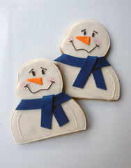 A snowstorm of flour, sugar and butter helped create our tasty frosted friend, complete with charcoal buttons, carrot-orange nose, and blue fondant scarf.