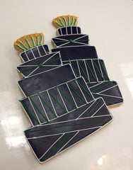 Iced cookie favors come individually wrapped in clear bags with a single organdy or satin ribbon and favor tags. Ribbon style and color is chosen to best complement the cookie. Learn more here »